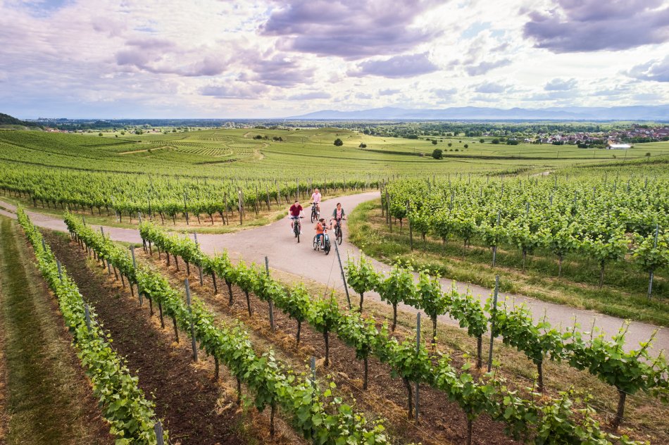 Der Bus bringt Sie zur deutsch-französischen Grenze bei Marckolsheim, wo Sie den Radweg entlang des Rhein-Rhone-Kanals nach Norden nehmen. Sie passieren Dörfer wie Schwobsheim, Bösenbiesen und Muttersholtz und erreichen Selestat, wo Sie in der Altstadt mit romantischen Plätzen und Cafés eine Mittagspause machen können. Nach einem Bummel durch die historischen Kirchen und das Brotmuseum setzen Sie die Tour entlang der Elsässischen Weinstraße fort. Am Nachmittag halten Sie im Weindorf Ribeauvillé, das für seine Fachwerkhäuser bekannt ist. Von dort fahren Sie zurück zum Ausgangsort, stets mit Blick auf den Kaiserstuhl und den Schwarzwald.(ca. 58 Rad-km)