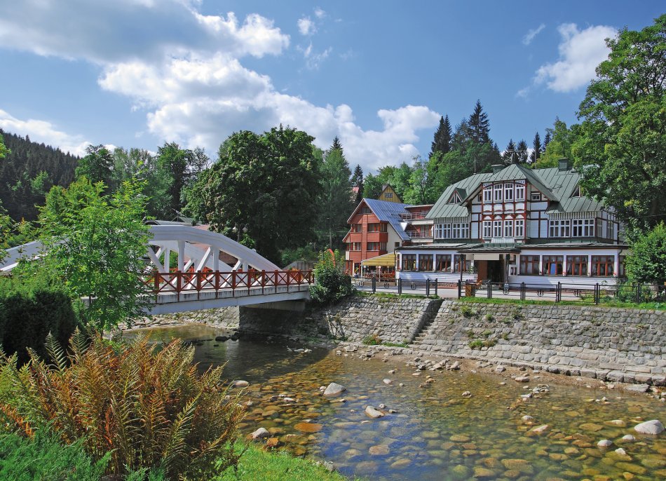 Gemütliche Anreise nach Spindlermühle. Ihr Pinia Hotel & Resort befindet sich am Rande des Nationalpark Riesengebirge, ein Stück oberhalb der Labská-Talsperre.