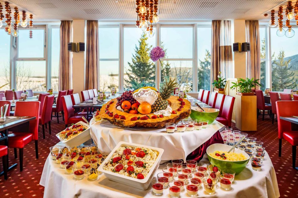 Anreise und „Herzlich Willkommen“ im Ahorn-Hotel Am Fichtelberg, das auf 1000 m Höhe, direkt am Skihang liegt. Zum Abendessen stärken Sie sich am kalt-warmen Buffet. Am Abend steht Live Musik auf dem Programm.