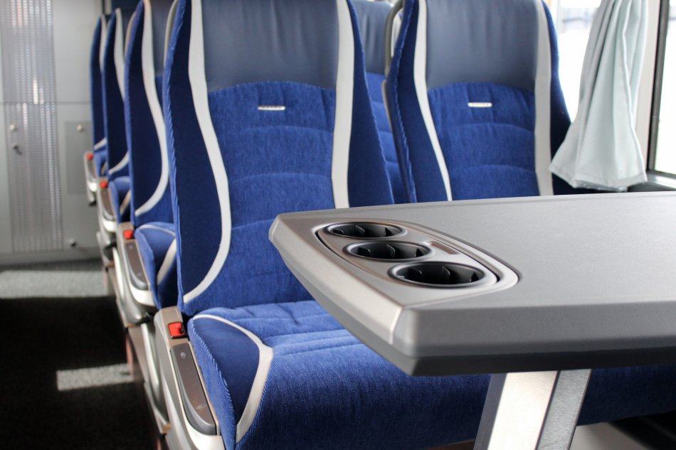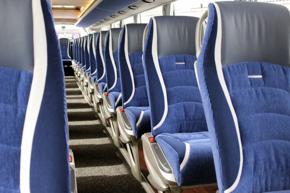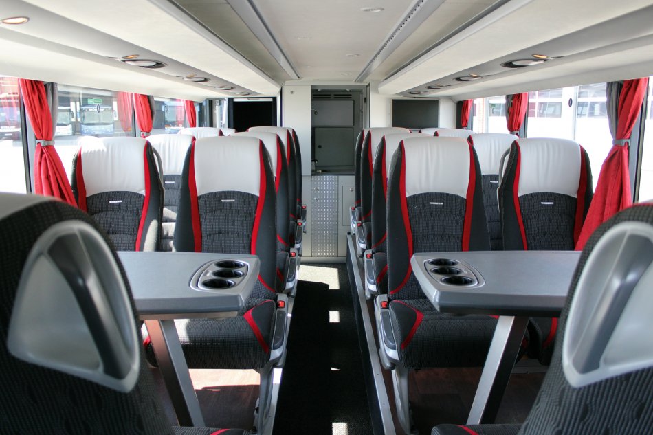 Busplätze: 81 Fahrgastplätze, 1 Reiseleiterplatz