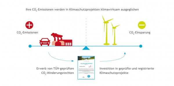 Dem Prinzip des CO2-Ausgleichs liegt die Grundidee der Klimabalance zu Grunde: Treibhausgase haben eine globale Schädigungswirkung – für den Klimaschutz ist es nicht relevant, wo Emissionen entstehen. Klima ist global. Hieraus ergibt sich die Möglichkeit, unvermeidbare Emissionen von Treibhausgasen an einem Ort durch zusätzliche Klimaschutzmaßnahmen an einem anderen Ort klimawirksam auszugleichen. Dafür werden die Emissionen eines Unternehmens ermittelt. Diese sollten in erster Linie reduziert und eingespart werden. Aktuell unvermeidbare Emissionen können durch zertifizierte Klimaschutzprojekte ausgeglichen werden.