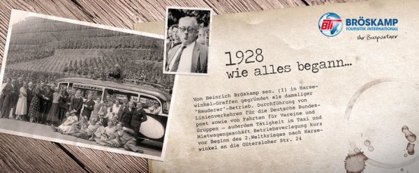 Unsere Geschichte reicht bis ins Jahr 1928 zurück. Seitdem hat sich BTI Bröskamp Touristik International kontinuierlich weiterentwickelt.